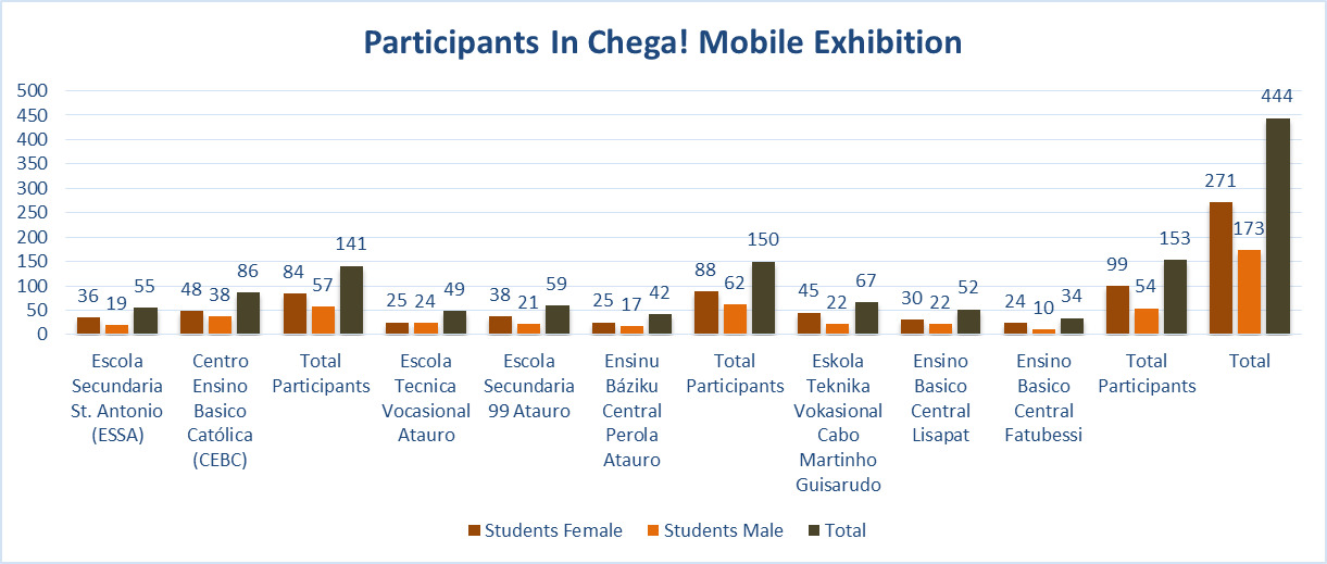 From mid-2024 to 2025, ACbit has carried out the Chega! Mobile Exhibition in 8 schools in three municipalities: Baucau, Atauro, and Ermera, reaching a total of 444 students.